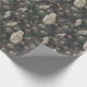 Spooky Halloween som omsluter papper har en mönster av vit uggla och nattblommor som blåser på en svart bakgrund.