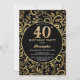 blommönstret Svarta och Guld vid 40:e födelsedag Inbjudningar