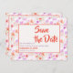 Meddela din speciella dag i stil med den här tropiska botaniska designen i trendig mango orange och lavender som har en söt mönster av mjuka vattenfärgblommor och snyggt. Det är lätt att anpassa sig och postkortsformatet gör det till ett ekonomiskt val för bröllop på en budget. #mango #orange #blommigt #savetedat
