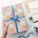 Watercolor blommigt Wrapping Papper. Blommönstret chic i mjuka pastellskuggor av rosa, ljusblå och lätt orange. Trendig, snyggt, chic och femininin design som kommer att göra allas vår tid ljusare. : Kate Eden Art