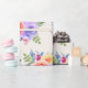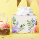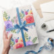 Svällning papper med en fantasifull blommigt bukett med vattenfärgen ro. Snyggt, viskhet och kreativ. Ett paket ro i rosa, lila och gult. Med många spritar och löv i grönt, rosa, lila och blått. Bakgrunden är en gulvit champagne färg.