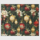 Vintage jul Fantasy Blommigt Vintervita blommor mönster på mörk grönt bakgrund med röda och guld baubles-prydnadsföremål