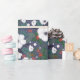 VinterModern jultomte Wrapping Papper Blommönster för gift-radbrytning har vinter-blommönstret i rött, vitt och grönt mot blå bakgrund. Perfekt för presenter som täcker in julklappar och helgdag. Skapat av Evco Studio www.zazzle.com/store/evcostudio