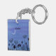 En vattenfärgsmålning av några vackra blommor under ett halvmånsfärande måne lägger märke till anpassadets nyckelkedja!