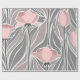 Ett blommönster med mjuka rosa-tulpaner mot en muterad grått-bakgrund.