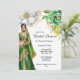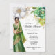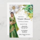 En vacker vattenfärgsgrafik av en indisk brud med grönt och guld sari-möhippa, med dekorativa guld-beslag och en lång slöja. Hon står under en enda vit och en enda grönt blomma i fullt-blomman mot en vit bakgrund. Svart kalligrafiskript och latinska svarta stil-mallar visas för högerna för din anpassningsbar. Den här designen passar perfekt för elegant, enkla möhippor, blommigt eller botaniska röda och guld. Du kan gärna ändra bakgrund och teckensnitt färg till valfritt färg om du vill ha kostym vid ditt speciella tillfälle.