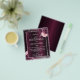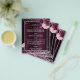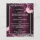 Observera att den här menyn är på flygblad papper och mycket tunn. Om du vill ha en tjockare meny (samma design) kan du besöka vår butik. En elegant, glamorös bröllop-meny. En djup burgundisk gradientbakgrund, dekorerad med faux silver glitter, sparkler och rosa och brugudnyblommor. Vit text. Anpassa och lägg till menyn. Du kan lägga till mer text, foton på baksidan.