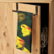 Tulip-blommor av gult och röd färg på en blomma. Spela upp solljus och mörk grönt bakgrund. Tulips ser ut som brinnande ljus. Gult tulpaner står för hopp, glädje och starkt och entusiastiskt leende.
