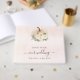 Ro guld, rosa övertoningsbakgrund. Dekorerad med en kräm-färgad och blommor. Anpassa och lägg till namnen. Rygg: lägg till texten.