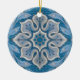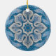 Blommor, blommönster, blått och grått-snöflinga julgransprydnad keramik
