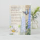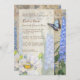 "Blommor Blue Butterfly Botanical Inbjudningskort för möhippan." Skapat från en pastellmålning av en internationellt licensierad konstnär och formgivare, Audrey Jeanne Roberts och grafiskt designad i en elegant, botaniskt blå morpho butterfly, drakflugor och vackra trädgårdsblommor från Delphinium. Copyright.