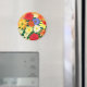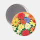Magnet som en detaljerad illustration av daisy och stjärnor i ljusa skuggor av orange, gult och rött
