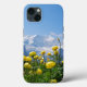 Fotot från fantastisk Getty Bilder visar hur ängen med gula blommor ligger i de schweiziska Alpernorna framför berömdens berg Eiger Monch Jungfrau nära Grindelwald och Interlaken.