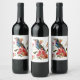Blommor, fågel och granatfrukt. vinflaska etikett