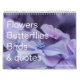 Denna tolvmånaderskalender innehåller blommar, tulpaner, poinsettes och andra vackra blommor, fjärilar och fåglar, och inspirationstecken om naturen: JANUARI Jorden skrattar i blommor (Ralph Waldo Emerson). FEBRUARY Faith är fågeln som känner ljuset när gryningen fortfarande är mörk (Rabindranath Tagore). MARCH Flowers and butterflies drift i färg, belyser vår (okänt). APRIL Gör något idag som uppmuntrar dig till blommar (okänt). MAY Varje blomma är en själsblomma i naturen (Gerard De Nerval). JUNE I glädje eller sorg är blommor våra ständiga vänner (Okakura Kakuzo). JULY Kanske fjärilen är ett bevis på att man kan gå igenom en underbar massa mörker och ändå bli något vackert (okänt). AUGUST Blev som en fågel på en bräcklig gren som hon känner sig böjd under henne, ändå sjungor hon bort trots allt, när hon vet att hon har vingar (Victor Hugo). SEPTEMBER A-blomman är ett leende från himlen (okänt). OKTOBER Min trädgård är mitt vackraste mästerverk! (Claude Monet). NOVEMBER Hur blir man fjäril? Du måste lära dig att flyga så mycket att du är villig att göra ge till en vattenpelare (okänd). DECEMBER: "Det är min tro att varje blomma njuter av luft den andas! (William Wordsworth).