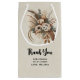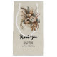 Party tackar er presentsäck med en söt bukett med persikofärgade blommigtar, omgiven av brunbrons- och bladgräs med ludderaccenter.