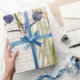 Härlig collage av botanisk konst för vintage av fåglar för den blåttSpatuletail hummingbirden och den gula påskliljan/pingstliljan/den Amarylis familjen av blommor, med raddabotanik noterar, är på detta slående in papper. Bilder är det förföll offentliga området tar copyrightt på tack vare. Collage är vid mig.
