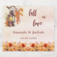Ro guld, rosa övertoningsbakgrund. Dekorerad med vintage- och orange-blommor. Anpassa och lägg till namn och bröllop-datumet. Text: falla i kärlek.