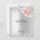 Ett tack för en 50-årsdag (eller vilken ålder som helst). En faux silver tittar bakgrund. Dekorerad med ro guld och vita blommigtar, blommor och konfekt. På framsidan, ett skript med stora bokstäver och texten: Tack, text, titel och datum. Tillbaka: Anpassa och lägg till tackkort och namn.