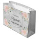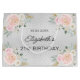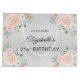 En faux silver tittar bakgrund, dekorerad med rosa och vita blommor. Anpassa och lägg till ett datum, namn, ålder. Namn är skrivet med ett modernt handskript i stil.