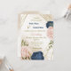 Vacker bröllopsinbjudan med marinblommor och rosor och grönt löv. Uppgifterna om guld glitter simuleras. Det är lämpligt för både bröllop och förlovning inbjudan. OM DU VILL HA MER MATCHING PRODUCTS klickar du på samlingen ovan eller kontaktar mig