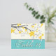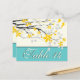 Magnolia blommor gula turkos bröllop anpassad blomsterbukett bord nummer vykort, med en vacker magnolia gren med gula blommor, knoppar, en fågel och turkos enfärgad botten. Elfenben, gul, turkos, svart, grå. Perfekt för ett vår- eller sommarbröllop.