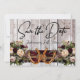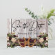 Denna design har en rustik elegans med ett enkelt tema. Bakgrund av gammalt brädgods med vinröd band, knutna hästskor och buketter av vilda blommor med platser för datum på framsidan. Platshållare för ett foto av paret finns på baksidan av kortet med namn och texten "Gettin' Hitched" på en matchande bandbakgrund. Designad för att samordna med "Gettin' Hitched - Horseshoes, Ribbon & Lace"-kollektionen. För att ändra detaljer, klicka på «Personalisera». För att flytta texten eller ändra textstorlek, teckensnitt eller färg, klicka på «Klicka för att anpassa ytterligare».