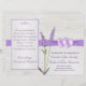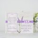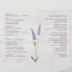 Lila lavender-blommor och -hjärtan på Bröllopsprogrammet av lätta träplankar. Lila-menyfliksområdet är den utskrivna bilden. Du kan justera texten enligt dina krav.