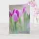 På framsidan av detta elegant finns det nära lila tulpaner med oskarp bakgrund och ord Lycklig Mors dag, och insidan har ett vackert citat av St. Therese of Lisieux: Guds vackraste mästerverk är hjärtat i mor.