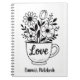 Vackert minimalistiskt mönster i svart på blommor i ett te kopp med ord Kärlek. Snygg bärbar back to school för vardaglig använda. Flickor kommer att kunna använda den här bärbara roligten för skoluppdrag eller anteckningar.