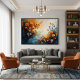 Detta abstrakta konstverk firar livet med livfulla blommor i orange, gult och vitt, mot en strukturerad bakgrund i blå och guld. Perfekt för glada miljöer, det tillför värme och dynamik till alla rum och förvandlar det till en oas av färg och kreativitet.