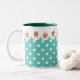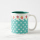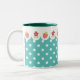 Illustrerat med kawaiiblommor och jordgubbar på en kricka- och vitpolka dotsbakgrund kommer med denna ska mugg en bra känsla för dina morgnar och en gullig dekor till ditt kök!