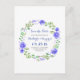 Enkel och söt blå blomsterkrans spara datum med handmålade akvarellblommor