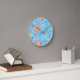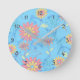 Blommor, ljusblå väggklocka