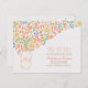 lantlig landsbygd save the date vykort med persika masonburk full av blommande korallblommor, handskrivna blad, söta trädgrenar och kärlekshjärtan. Perfekt save the date för vintage men modern eller rustik landsbygd bröllop med masonburk dekoration.