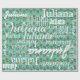 En roligt- och grafiktypografisk design med ett blommönster. Upprepat namn i olika typsnitt stilar och storlekar och blommor från färg