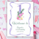 Födelsedagsöppningskort med vattenfärgad illustration av nummer ett med vild blommor och lila band.