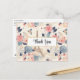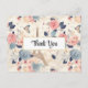 Tack-kort med ett vackert franskt tema-mönster. Vackra blommor och ett Eiffeltorn och fjärilar. Färgerna inkluderar rosa, blå, persika och kräm.
