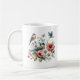Det här är ett kaffe mugg av 11 oz. Den har en design av blommor och fåglar.
