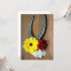 Partsinbjudan med blommorna från Triple Krona; Kentucky Derby röd ros, Preakness Stakes black öga susan och Belmont Stakes white carnation med hästseshoe på rustic ladträ.