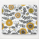 Blommor och löv i gult och svart musmatta