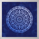 Söt blommor och prits mandala i en blå övertoning på en mörk blått texturerad bakgrund. Ett underbart tillägg till ditt meditationsutrymme eller yoga center-dekoration. Finns i andra färg-alternativ.