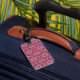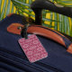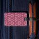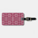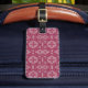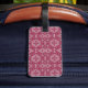 Ett nätt mönster med blommor och ett geometriskt formar i ett rött mörkt hallon, nästan burgundy, färg.