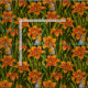 Blommor, orange och mörk grönt tyg
