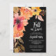Vackra höstblommor och löv med svart bakgrund visas på detta falltemade fall i Kärlek inbjudningskort för möhippa. MATCHING-objekt i vår butik.