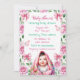 Kute personlig blommigt Flickans barnduschinbjudningar med lite flicka under en blommigt filt. Söt botaniskt rosa ros och grönt löv med vattenfärg.