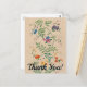 Tack för vykortsdesignen finns meddelandet "Tack!" på framsidan, tillsammans med blommor, stammar och löv. Baksidan innehåller ett uppskattningsmeddelande från personligen.