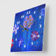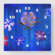 Blommor Teckning Blue Summer Square Wall Clock Fyrkantig Klocka