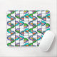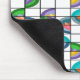 Den här musmattan har en Boho-design av blommor inuti ovaler som har delats upp i kvartsparter och placerats på ett rutnät.