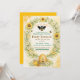 Fira din speciella dag med denna blommiga bihush-inbjudan med en mjuk akvarellsolros- och vildblomsdesign med diskreta bikupsmönster. Denna charmiga bin-tema inbjudan kombinerar rustik elegans med en söt trädgårdsestetik, vilket gör den perfekt för en ”Vad blir Baby Bi” baby shower, bin könsreveleinbjudan, solros-bin-fest eller honungsbi-firande.